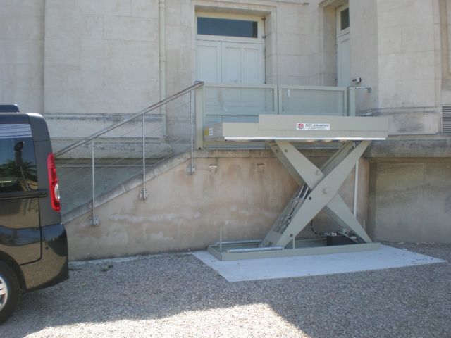 - Table built in steel, epoxy painted, inscribed on hydraulic jacks