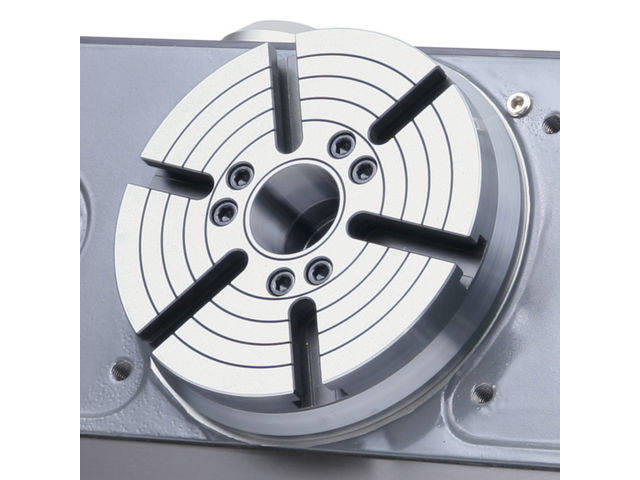 210 mm Tilting 2-Axis Trunnion Rotary Table, with scale feedback on the A (tilting) axis.