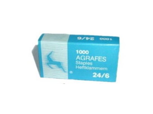 24/6 Coppered staples. Box of 1000 Staples. Capacity of fastening: 2,5 mm. Compatible with all desk staplers & pliers using 24/6 or 24/8.