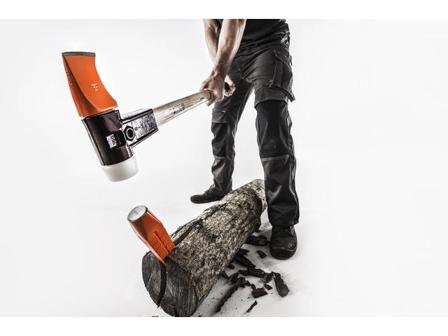 Splitting axe and soft-face mallet in one, axe blade drop-forged and hardened, ground and polished, solid handle-protection sleeve, insert made of superplastic, KWF-certificated, all parts are replaceable