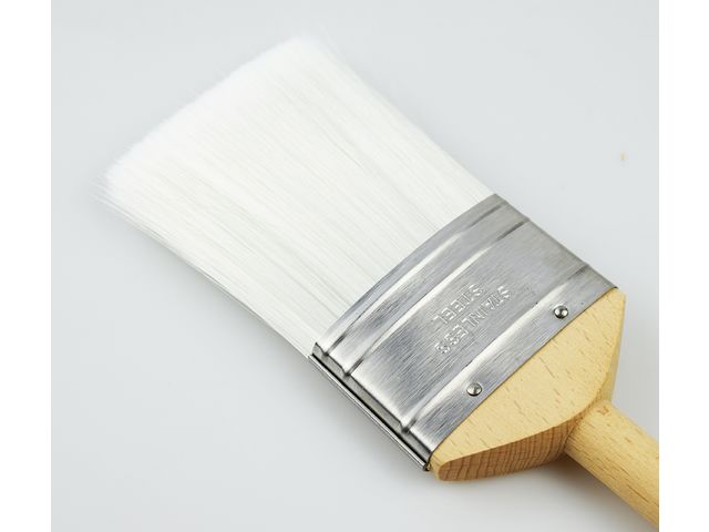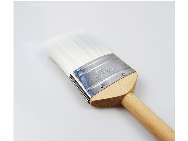 Ce pinceau plat d'une largeur de 63mm en fibres synthétiques souples convient pour tous types de peinture. Son manche en bois naturel est long, fin et rond, ce qui offre une bonne prise en main pour un travail précis sur les bords.