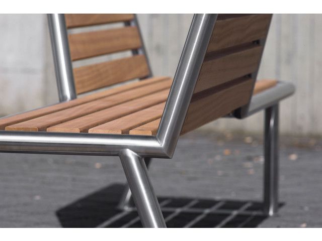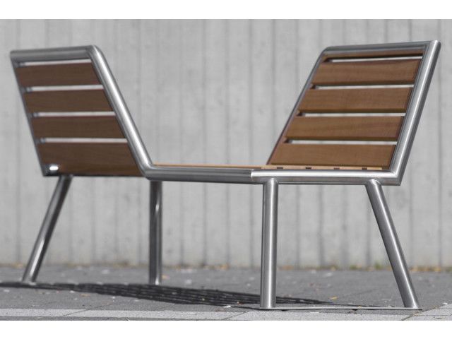 ABES Bench 103 is a park bench steel tubes made of bent and adjusted to miter with two diagonally opposite back rests. The steel frame is designed to accommodate seating supports and back rests made of wood. Mounting Screw-on or free standing. Finish – Stainless steel 1.4301 pickled and smoothed, electropolished to customer’s requirement (high-gloss) – surcharge. – Hot-dip galvanised steel ST37, powder coating in standard RAL colours or DB 703. – Seating slats made from hardwood. – The following changes are possible for an extra price: colour and wooden surface. ABES Bench 103 overview: Park bench with back rest – Feet: Stainless steel 1.4301 pickled and smoothed or Hot-dip galvanised steel ST37, powder coating in standard RAL colours or DB 703. – Seating slats: Hardwood. – Measurements (L x H x W in mm): 2380 x 730 x 835. – Delivered unassembled.
