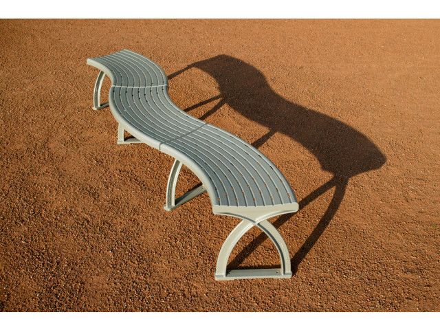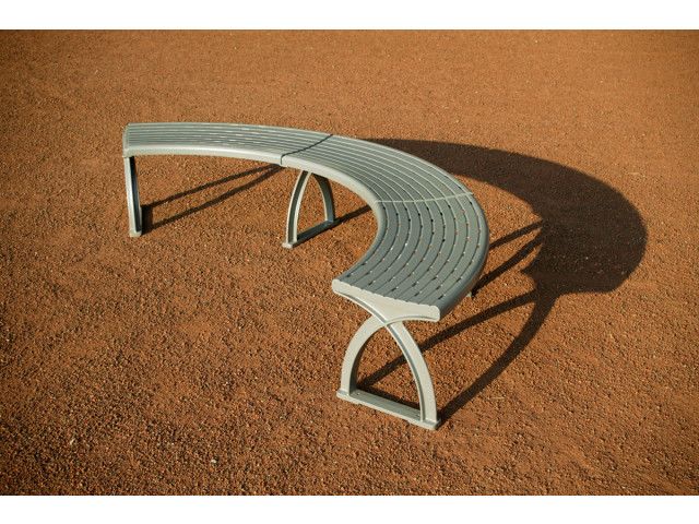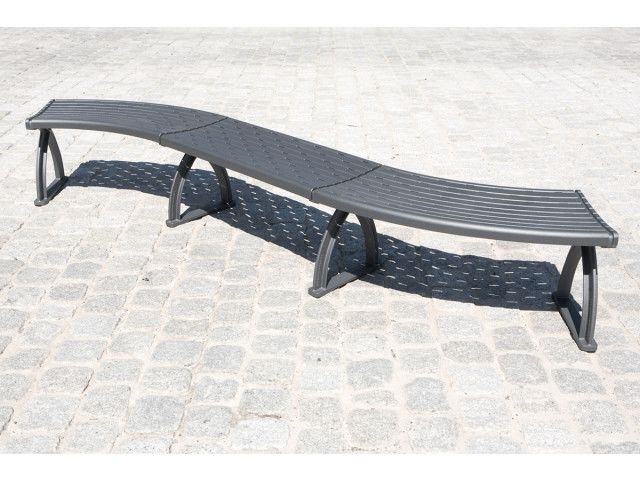 ABES Bench 104 is a cast aluminium bench system without back rest, consisting of four basic units. The system has a modular construction: – A straight seating unit. – A seating unit bent at a 45° angle. – A seating unit bent at a 90° angle. – Base with inward-facing legs, joined to a plate at the lower end, with the upper end of the plate supporting the seating units. Mounting Screw-on or free standing. Finish – Powder coating in standard RAL colours or DB 703. – Other colours available on request at a surcharge.
