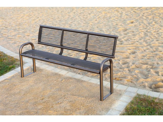 ABES Bench 107-2 is a park bench with back rest, consisting of two U-shaped steel tube frames including mounting options for a seating slat made from several steel tube profiles. Back rest connected to the rear tube of the seating slat on sickle-shaped suspensions. Mounting Screw-on. Finish – Stainless steel 1.4301 pickled and smoothed Electropolished to customer’s requirement (high-gloss) – surcharge. – Hot-dip galvanised steel ST37, powder coating in standard RAL colours or DB 703. – Other colours available on request at a surcharge. ABES Bench 107-2 overview: Park bench with back rest – Base: Hot-dip galvanised steel ST37, powder coating in standard RAL colours or DB 703 or Stainless steel 1.4301 pickled and smoothed Electropolished to customer’s requirement (high-gloss) – surcharge – Measurments (L x H x D in mm): 1585 x 840 x 522. – Bench is delivered unassembled.