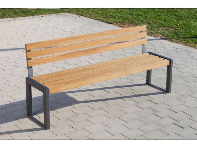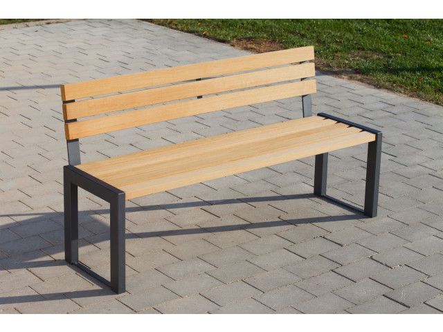 ABES Bench 143-2 is a park bench with back rest, consisting of two perpendicular side parts made from steel profiles, which hold five wooden slats. Back rest consisting of three wooden slats connected to steel girders. Mounting For screw fixing (at +/- 0 mm) or concrete embedment (floor recess 400 mm). Finish – Hot-dip galvanised steel ST37, powder coating in standard RAL colours or DB 703. – Seating slats made from hardwood. – The following changes are possible for an extra price: colour, length and wooden surface. ABES Bench 143-2 overview: Park bench with back rest – Base: Hot-dip galvanised steel ST37, powder coating in standard RAL colours or DB 703. – Seating slats/Back rest: Hardwood. – Measurements (W x H above ground x D in mm): 610/1890/1590 x 453/823 x 444/ 544. – Bench is delivered unassembled.