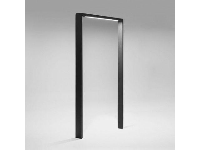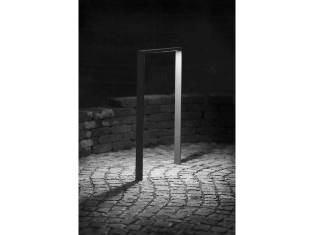 U-rack made from perpendicular steel profiles with an integrated LED bar unterneath the crossbar. Other dimensions are available upon request. Mounting Concrete embedment or removable with ground shells or screw-on. Finish – Stainless steel 1.4301 pickled and smoothed, electropolished (high-gloss) – surcharge. – Hot-dip galvanised steel ST37, additionally with powder coating in standard RAL colours or DB 703. Overview: Bicycle Stand, stainless steel, galvanised steel or powder coated – Height above ground: 860 mm – Full height: 1210 mm – Width: 820 mm – LED-bar (approx. 24,5 x 770 mm) – Power supply: 24 V DC – Power input: approx. 6,7 W – Luminous flux: approx. 560 lm – Reflected beam angle: 120° – Light colour: 4000 K – Light transmission: CRI >80 – Protection type: IP 67 – Connection cable: approx. 1 m with IP 67 plug The Connection, including all technical requirements, is delivered by the client and is not included in this package.