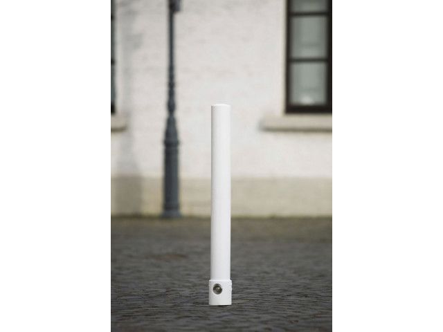 ABES Bollard 016 is a cylindrical bollard with a cylindrical base. Mounting Removable with 3p-Technology, comprising a ground shell, a junction piece with integrated breaking point, two clamping cones and a hex-head bolt. Alternatives: concrete embedment or fold down. Ground rosette option (000.031) Finish – Powder coating in standard RAL colours or DB 703. The basic package for ABES Bollard 016 with 3p-Technology contains: – The bollard, cast aluminium, powder coated in RAL, DB 703 Glimmer grey – Measurements (H above the ground x Ø in mm): 870 x 85/98 – Ground shell 300 mm (000.001), cast iron, galvanised – Junction piece (000.008), cast iron, galvanised – clamping bolt set, hex head (N1+N2+hex-screw), stainless steel 1.4301 (000.004)