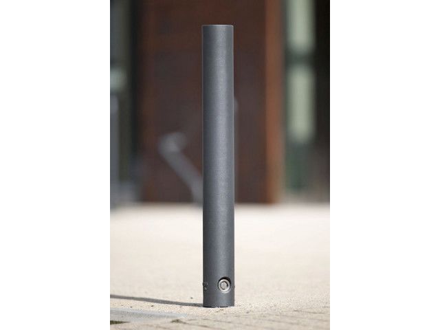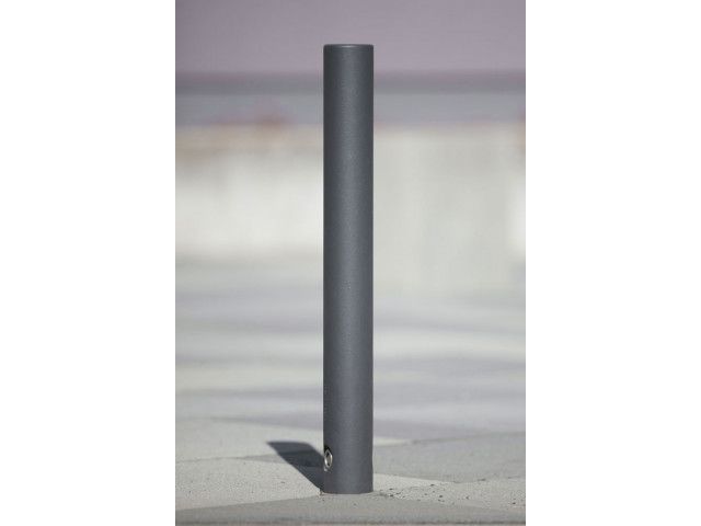 ABES Bollard 031 is a cylindrical bollard made from cast aluminium, with a flat top. Mounting Removable with 3p-Technology, comprising a ground shell, a junction piece with integrated breaking point, two clamping cones and a hex head bolt. Alternative: concrete embedment. Finish – Powder coating in standard RAL colours or DB 703 The basic package for ABES Bollard 031 with 3p-Technology contains: – The bollard, cast aluminium, powder coated in RAL or DB 703 Glimmer grey – Measurements (H above the ground x Ø in mm): 870 or 1.200 x 98 – Ground shell 300 mm (000.001), cast iron, galvanised – Junction piece (000.008), cast iron, galvanised – clamping bolt set, hex head (N1+N2+hex-screw), stainless steel 1.4301 (000.004)