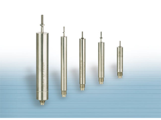 The linear transducer model PWA measures the absolute position of the plunger without contact or wear using an inductive resonator measuring system. This consists of an excitation coil which causes an oscillating resonance circuit (moving target) fastened to the plunger to oscillate. This in turn excites the receiver coils fixed in the housing, which are printed on a printed circuit board. The integrated electronics transform these signals (sin/cos) into a signal proportionate to the linear travel. The measuring system is insensitive to electrical and magnetic fields. 0(4) to 20 mA and 0 to 10 VDC are available as standard as analogue signal outputs. CANopen, IO link and SSI are in preparation. The sensor is fastened using at least two retaining clips HK-01 or using sliding blocks ST-01. The sensor can be equipped with ball joints at the front and rear. Alternatively, the sensor's plunger can be designed as a button.