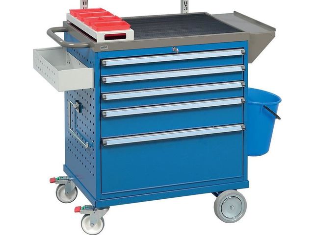 Both sides of the trolley have standard, perforated panels that you can accessorise with brackets and mountings, to suit any application. Service trolleys are also equipped with two fixed castors (Ø 150 mm) and two swivel castors including brakes (Ø 100 mm).