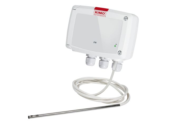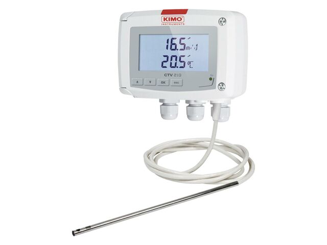 Kimo’s CTV 210-R is a transmitter with hotwire probe measuring air velocity from 0 to 30 m/s and temperature from 0 to +50°C.