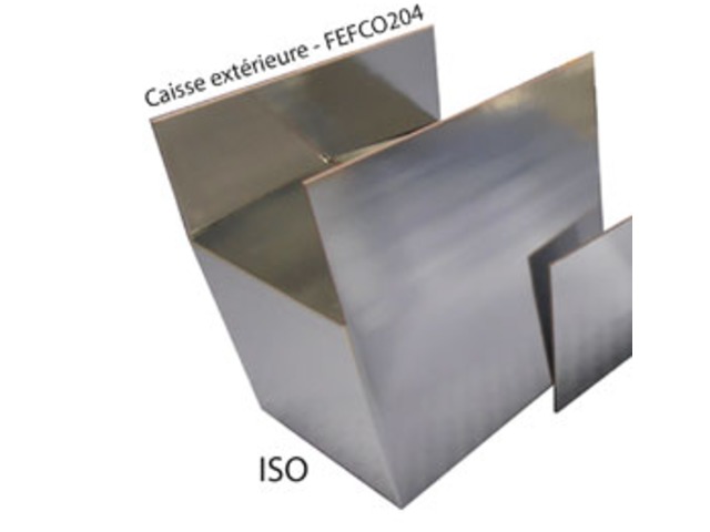 ISO + Solution : American casing, Isostrat aluminized interior/exterior, thickness 2-5 mm, with jointed flaps and inner lining in Isostrat (FEFCO 204 + 904), with or without internal wedging.