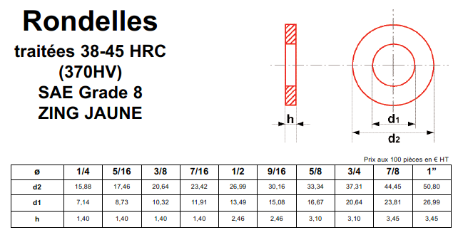 American Screws : Rondelles Plates Traitées 38-45 HRC Z.Bichro ANSI B18-22-1