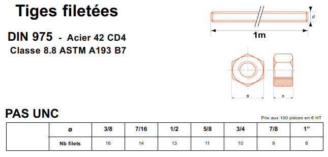 American Screws : Tige Filetée - Tige Filetée Acier B7 Pas UNC