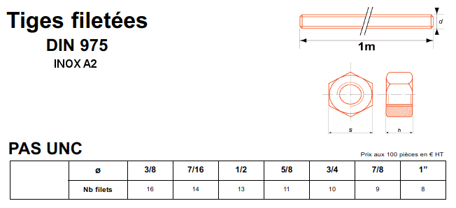 American Screws : Tige Filetée - Tige Filetée Inox A2 Pas UNC