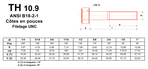 American Screws : Vis tête Hexagonale - Vis tête Hexagonale Acier 10.9 Z.Bichromaté ANSI B18-2-1- Pas UNC