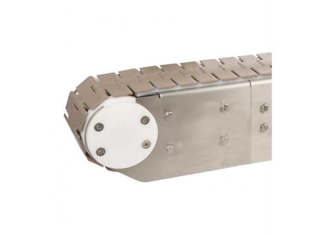 Industriefertiges Edelstahl-Förderband mit flexibler Kette.