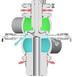 The aseptic mixproof double changeover valve incorporates a physical barrier by keeping the valve aseptic during the production phases.