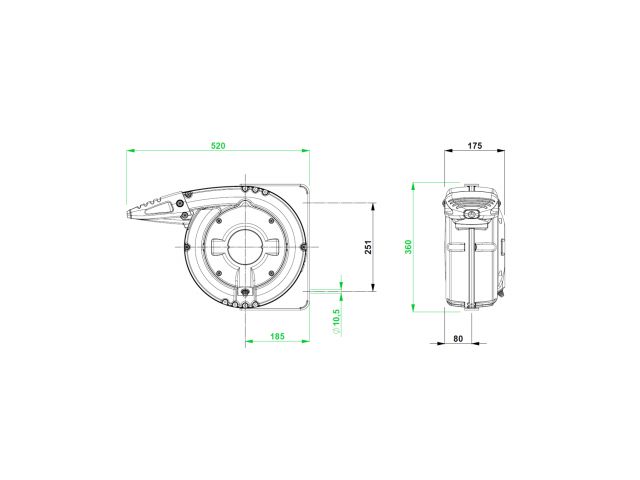 Dimensions (including bracket): H 360 x W 520 x D 175 mm.
