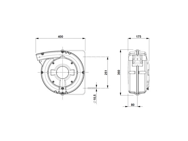 Dimensions (including bracket) : H 360 x W 520 x D 175 mm.