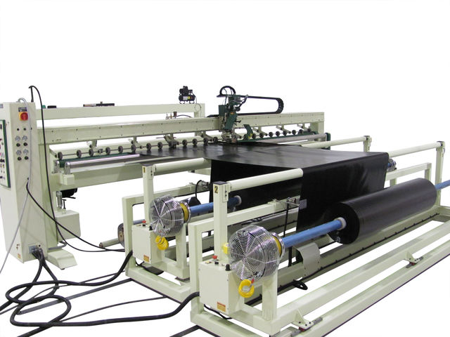 The TG Series of Geo and Cover fabricating machines are designed to eliminate excessive fabric handling. The TG series will efficiently produce almost any size Geo Liner or Cover. By using our exclusively designed welding and pulling system, the TG3600 will dramatically reduce labor and increase production. Because we use your floor as our welding surface, the TG3600 only takes up limited floor space. No pre-pulling, no folding, no excessive handling.The model TG3600.