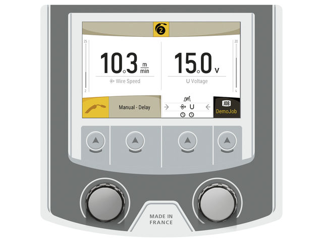 Welding processes : Standard, Pulse, Pulse in Pulse, and Manual. Trigger activation modes : 2T, 4T, SPOT, DELAY and TACK function. Precise control over the welding cycle : CreepSpeed, Softstart, Hotstart, Upslope,