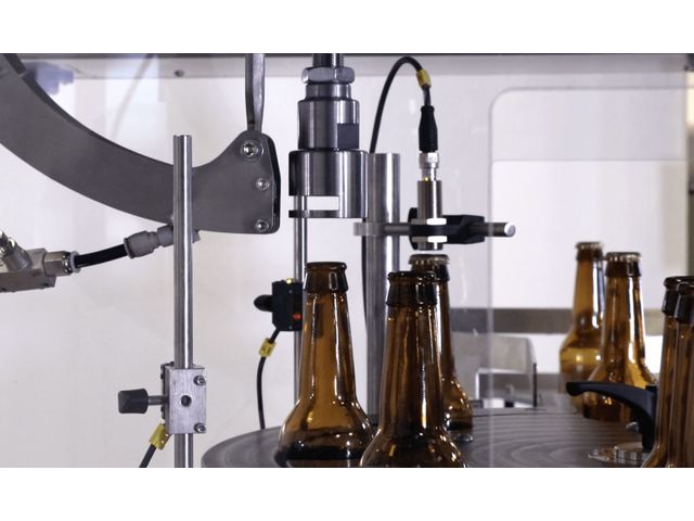In addition, a detector ensures the presence of the capsule. CDA’s automatic linear capping machine B-CAPS is compatible with a wide range of products from all types of sectors: food industry (capping fruit juice bottles), brewery (capping beer bottles), etc.