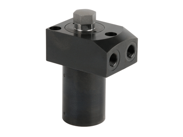 Hydraulic work supports are used to provide a self-adjusting rest for the workpiece during the machining operations. They compensate the workpiece surface irregularities, also vibration and deflection under machining loads. The top flange type allows for space-saving and direct installation into the fixture body. Oil supply is made through drilled channels or pipe thread.
