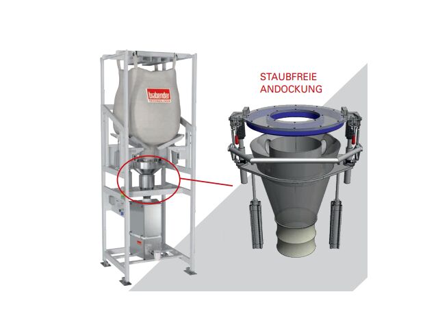 - Quick docking system for dust-free connection of the bag or liner outlet