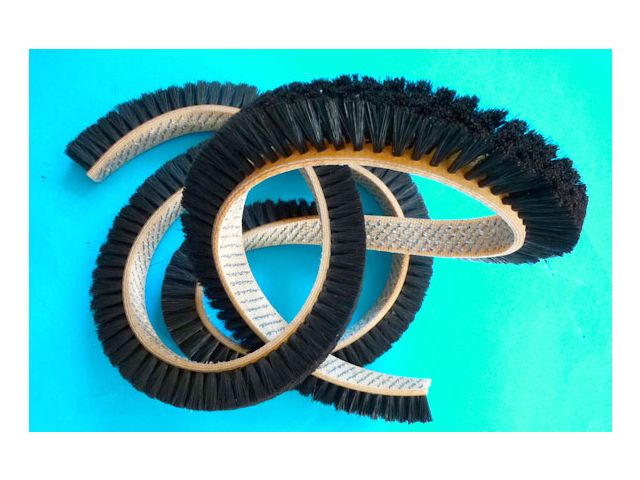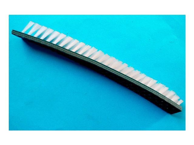 B2M belt brushes, used in printing and conveying applications, are equipped with leather or woven synthetic bristle.