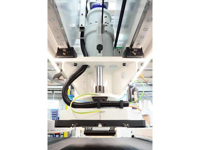 Cutting against dedicated conveyor belt or on counter board. Board oscillates on the X-Y axis