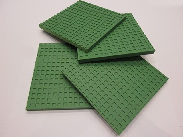 Bilz Insulation Plates are constructed with highly-developed materials which protect against vibration and structure-borne noise and can be used in many industrial applications. Manufactured from a carefully-controlled bond of nitrile rubber, cork particles, and polyester fiber net, this material possesses all the physical and mechanical characteristics required by the modern state of the art in technology. A major advantage of this newly-developed product is its resistance to modern cooling lubricants allowing it to be used for the mounting of machines in oil sumps. Particularly noteworthy are the product's excellent compression set values.