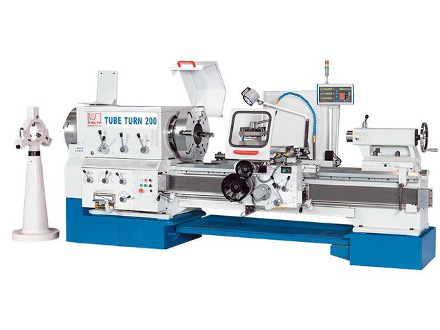 “ Tube Lathe with large spindle bore and dual lathe chuck for long tubes ”