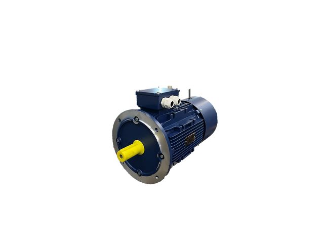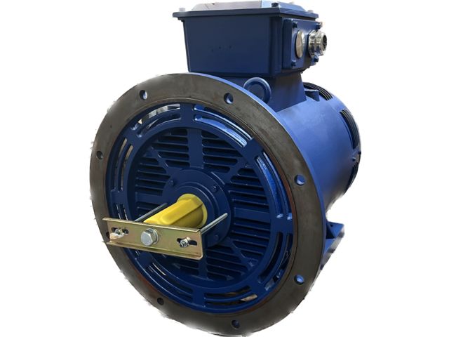 Focquet offers three-phase induction motors in cast iron or aluminum housings. The dimensions and power correspond to the values of a standard motor, but have been modified to allow braking applications. The disc brake is supplied with direct or three-phase alternating current by a rectifier located in the motor terminal block.