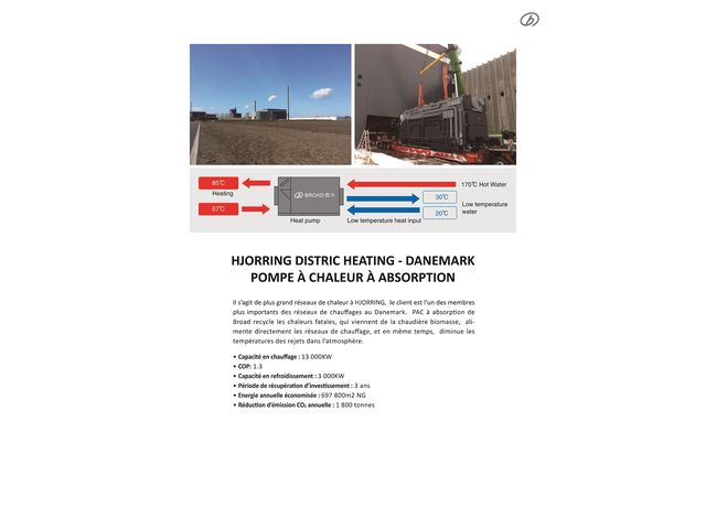 Broad absoprtion heat pump is a device driven by thermal energy (steam, hot water, exhaust or NG) which moves heat from low temperature to high temperature. An absoption heat pump recycles heat from low temperature heat source, to produce high temperature water. For typical application, conditions such as low temperature heat source and heating demande are different, so absorption heat pump has a wide range of working conditions.