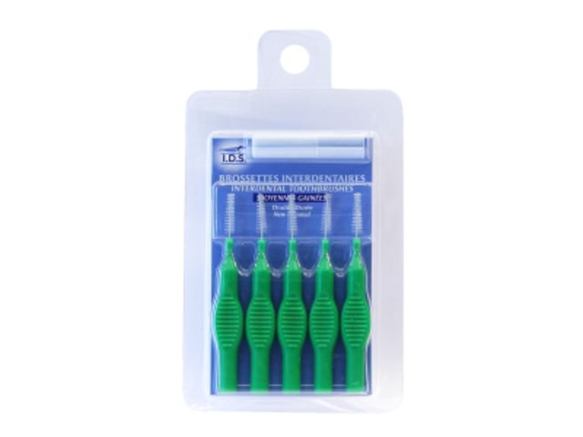 La brossette moyenne permet d'atteindre les espaces interdentaires antérieurs et postérieurs grâce à sa forme cylindrique et droite.