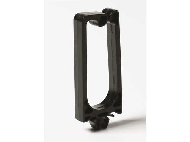 The cable-lock holds cables, it is recommanded for vertical and horizontal passage at the front or rear of modular elements. Installation is possible on the sections, rails or perforated sheet. It is releasable at any time thanks to its snap closure. Its capacity is equivalent to that of a trough 60 x 40 mm.