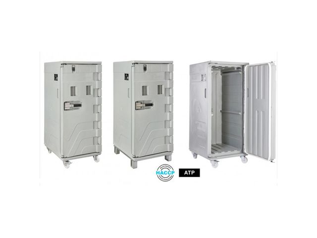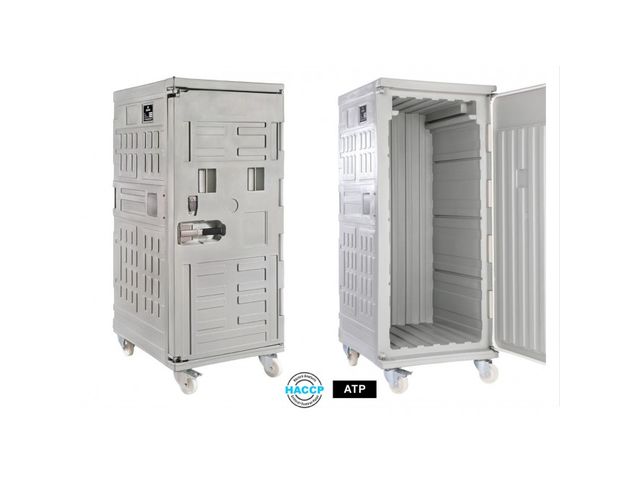 The internal and external walls of the container and its door are made from polyethylene, suitable for contact with food.
