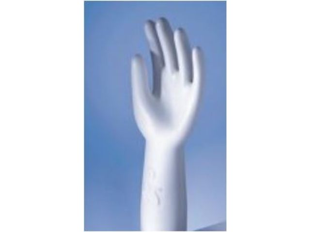 These dipping formers shaped like hands are made from technical porcelain – CeramTec offers molds for over 1,800 different hand shapes. In the glove manufacturing process these ceramic hand molds are dipped in a liquid latex, vinyl or PVC mass; the material adheres evenly to the ceramic dipping former, dries and, following several other processing steps, the finished glove can be removed from the mold. Material properties like thermal shock resistance, resistance to corrosive media and a low expansion coefficient are just some of the advantages that the technical porcelain these dipping formers are made from has to offer.