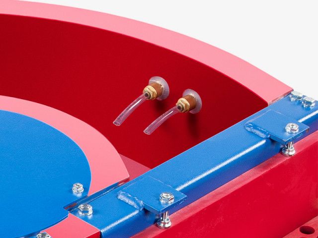 By pressing a button on the unit, you can quickly reverse the motor's direction of rotation before separating your workpieces from the abrasive media. This ensures that no workpieces or abrasive media are left on the gate that could get trapped between the separator flap and the working channel.