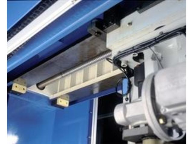 The travelling head movement is controled by servomotor and ball screw (2nd axis) with an accuracy of + or - 0.2 mm.
