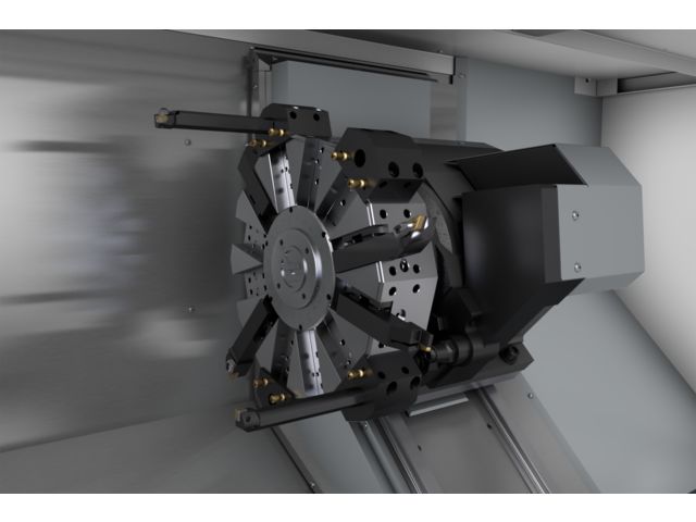 CNC Lathe; 21" x 26" (533 x 660 mm) max capacity, 3.0" (76 mm) bar, 31.75" (806 mm) swing, 30 hp (22.4 kW) vector drive, 3400 rpm, A2-6 spindle,10" (254 mm) chuck, 12-station bolt-on turret, 15" color LCD monitor, memory lock keyswitch, USB port and rigid tapping. Standard toolholder kit included with BOT or Hybrid turret. The Haas Bar Feeder is not compatible with the optional gear-drive spindle.