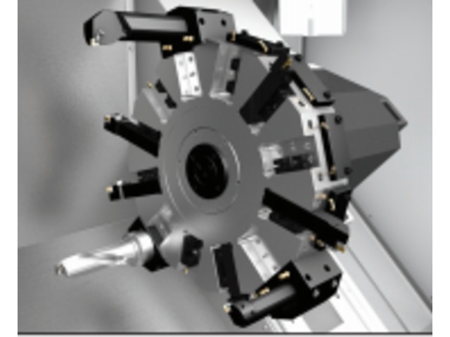 CNC Lathe; 25.5" x 44" (648 x 1118 mm) max capacity, 7.0" (178 mm) bore, 34.5" (876 mm) swing, 40 hp (30 kW) vector drive, 1400 rpm, 2-speed gearbox, A2-11 spindle, 12-station bolt-on turret, 15" color LCD monitor, memory lock keyswitch, USB port, color remote jog handle and rigid tapping. No chuck or rotating hydraulic union supplied. Standard toolholder kit included with BOT or Hybrid turret.