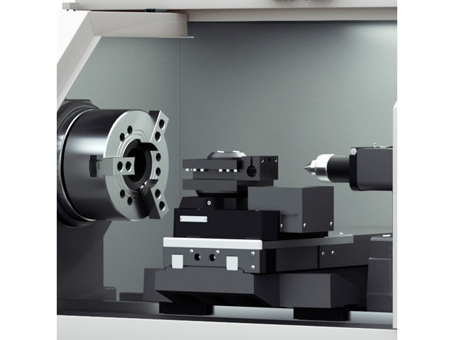 CNC Toolroom Lathe; 16" x 30" (406 x 762 mm) max capacity, chip enclosure, 20" (508 mm) swing, 10 hp (7,5 kW) vector drive, 1800 rpm, A2-6 spindle, Intuitive Programming System, coolant pump, 1 MB program memory, memory lock keyswitch, air blow gun, 15" color LCD monitor and USB port. No workholding, toolpost, or toolholders included.