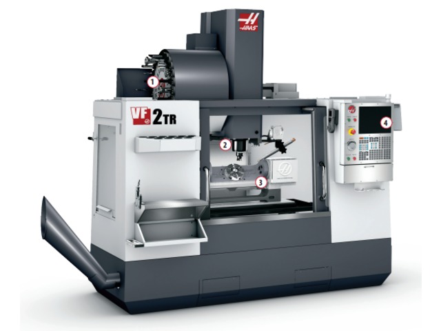 5-Axis Vertical Machining Center, 64" x 32" x 30" (1626 x 813 x 762 mm), with removable 12.2" (310 mm) 2-axis trunnion rotary table, 40 taper, 30 hp (22.4 kW) vector drive, 8100 rpm, inline direct-drive, 24+1 side-mount tool changer, 600 ipm (15.2 m/min) rapids, automatic chip auger, programmable coolant nozzle, power-failure detection module, 1 GB program memory, coordinate rotation & scaling, color remote jog handle, macros, high-speed machining, 15" color LCD monitor, USB port, memory lock keyswitch, rigid tapping and 95-gallon (360 liter) flood coolant system.