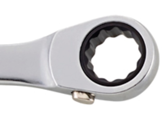 reversible, bi-hexagon, 72 teeth, for work in confined spaces, tight ratchet angle of only 5°, ring end offset by 15°, Chrome Alloy Steel, chrome plated.