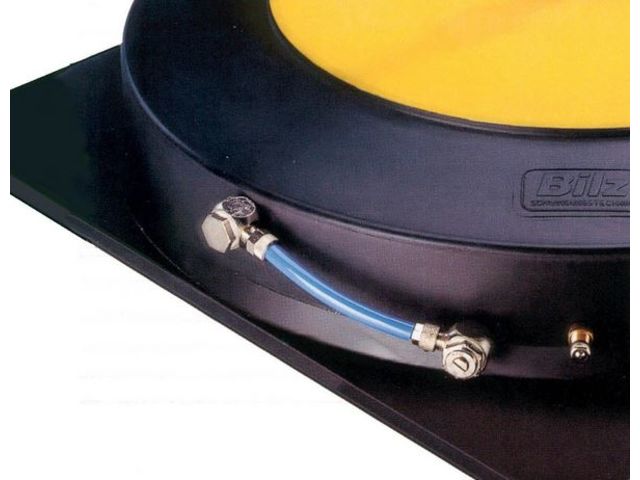 The elements are attached to the machine's mount holes using bolts. It is not necessary to bolt the elements to the floor. The machine is positioned on elements which are empty of air, these are then pumped up to the desired working height over a standard valve. The air pressure may not under any circumstances rise to above 5 or 6 bar. A maximum of 10 mm of travel is available for height adjustment.