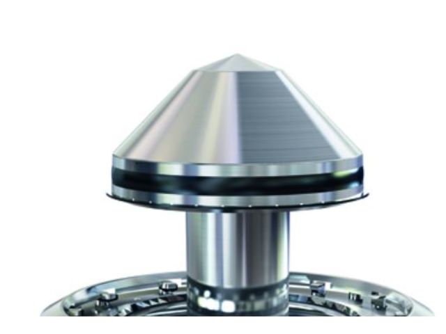 Then the cone probe connects internally to the passive cone valve, unclips and opens it in order to allow the transfer of powder into or out of the mobile container. In discharging mode, the flow of powder can be adjusted continuously by varying and pulsing the stroke of the cone valve via the telescopic cylinder and also by activating the integrated fluidization. For difficult-flowing, cohesive powders and for accurate dosing, an optional high-frequency vibrator can be integrated into the cone probe.