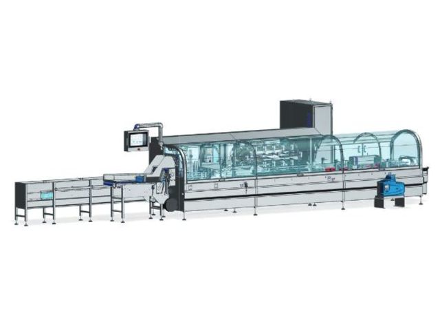 In addition to a hygienic design with gull wing doors for easy access and low ergonomic loading height of the blank magazine, the machine off ers solidly constructed functional subassemblies and adjustments. Internal components and components in contact with the product are made of stainless steel. Upon request, the frame is also available in stainless steel.