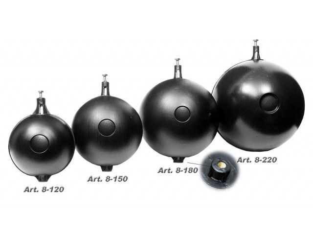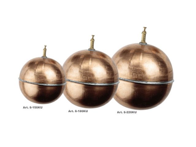 Copper floaters with a diameter from 85 mm up to 300 mm. The mounting will done by a soldered clamp with a lock screw or an inside thread.